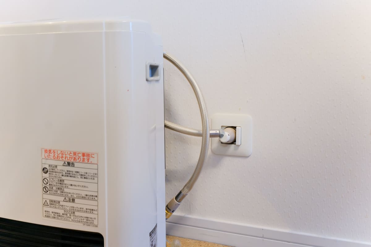 リビングにはキッチン側の壁にガス栓があるため、ガスファンヒーターやガスストープを使用可能