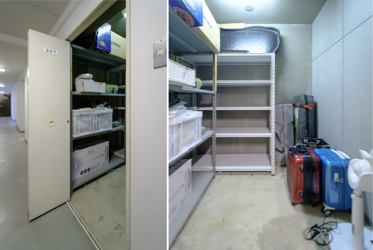 トランクルームは1階エントランス横の専用区画にある。アウトドア用具や自転車などの保管に便利