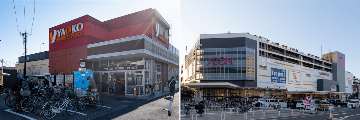 近隣の食卓を支えているヤオコー 大宮上小町店。買い物の幅を広げたいときにはイオンモール与野店が便利