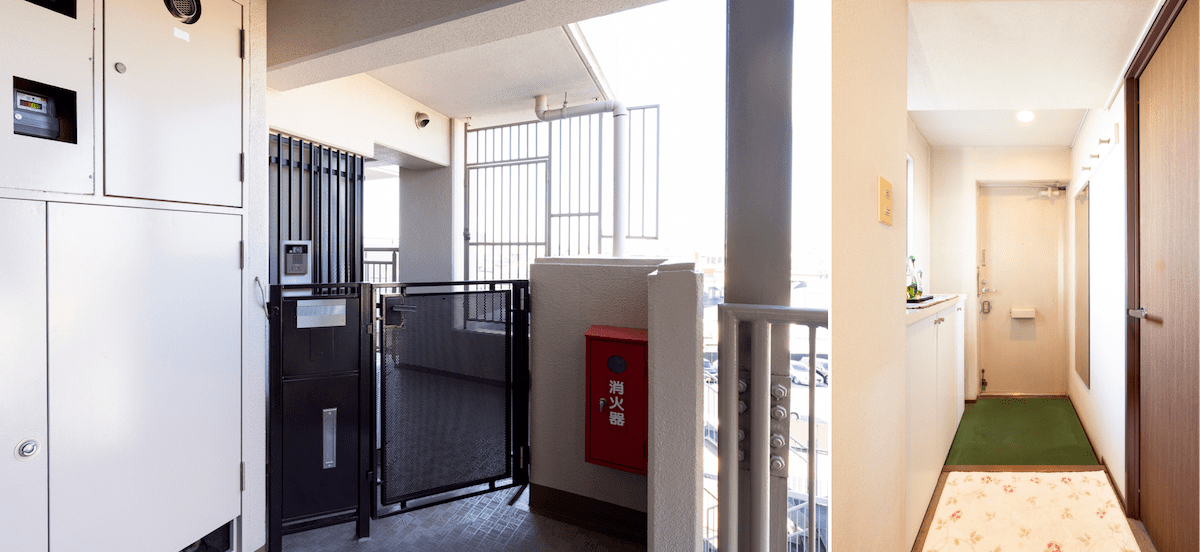 来客用の駐車場や車椅子マークの思いやり駐車場も敷地内に確保されていたり、ケアが行き届いているんです。来客用の駐車場はゴミ置き場と兼用のため駐車できないタイミングがあったりするので、そこだけ注意が必要ですね。