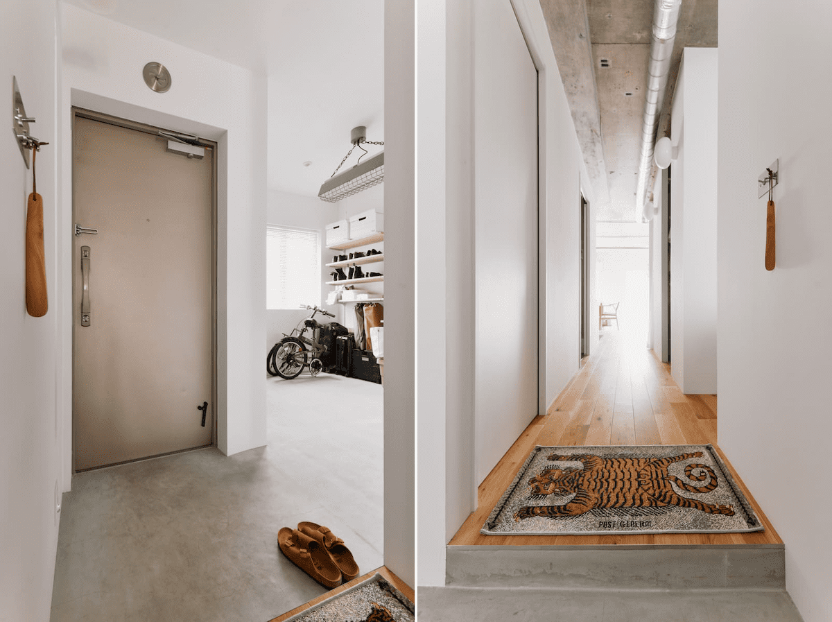 玄関脇の洋室を取り払ってシューズインクロゼットにすることで、外から持ち帰った自転車やアウトドアグッズをそのまま収納できて便利。オープンなラックにすれば湿気がこもりづらく、大切な靴も清潔に管理できますよ。