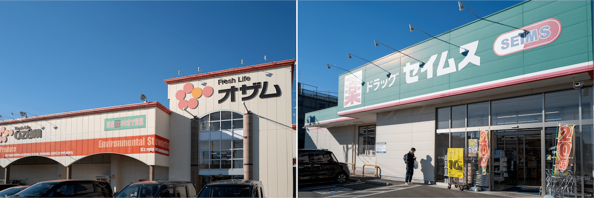 スーパーのオザムとドラッグストアのセイムスはそれぞれ物件から徒歩8分