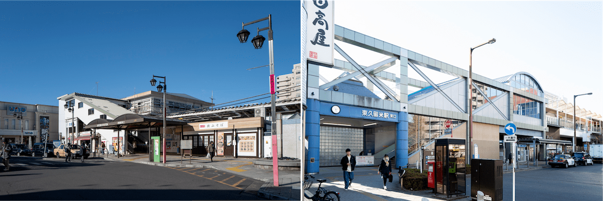 東京方面に近いのは右の東久留米駅。物件より徒歩16分。東・西口にバスターミナルが備わっていて規模も大きい