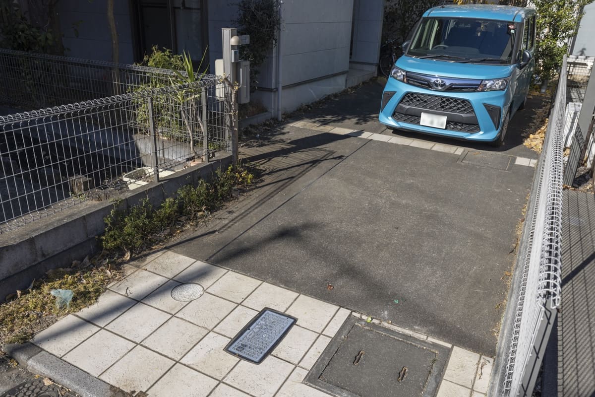 駐車場は2台分はゆうにある広さ。ピックアップトラックなどの1ナンバー車の所有も視野に入れられる