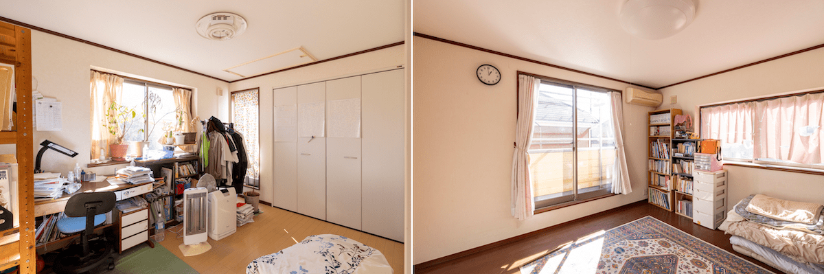 2階の個室はどれもリビング以上に日当たりが良い