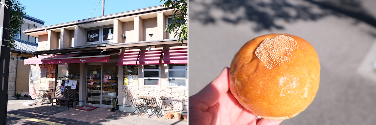 売主さんもおすすめのパン屋「Lapin」。焼きたてでホッとする味わいの「酒種つぶあんぱん」は150円