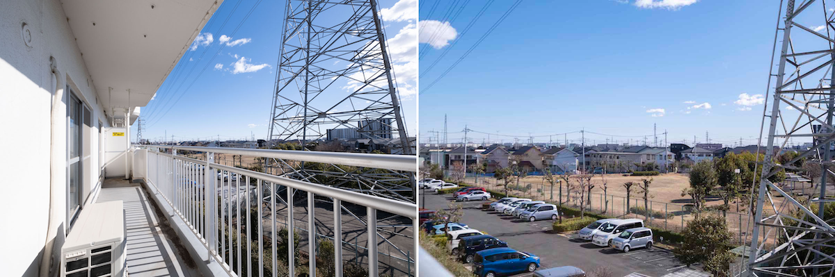 南側のバルコニー。夏には東武動物公園の花火が楽しめるのだそう
