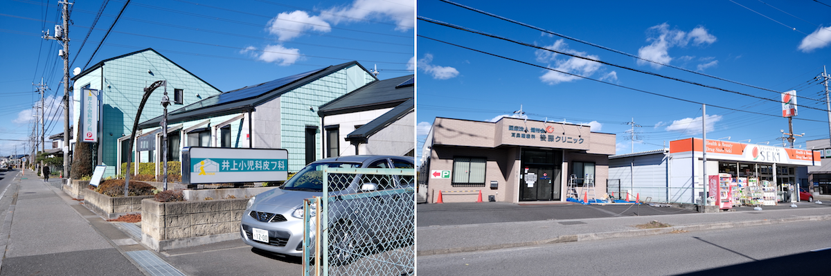 皮膚科は最寄りスーパー隣。耳鼻科はドラッグストアや薬局も近く、通院時も便利がよさそうだ