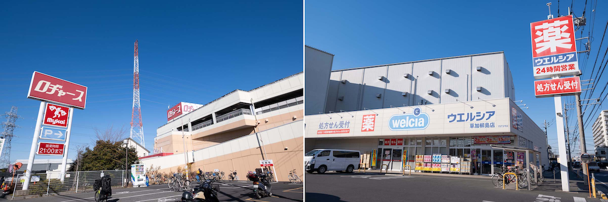 ロヂャース川口店とウエルシア草加柳島店は車で4分ほどの立地
