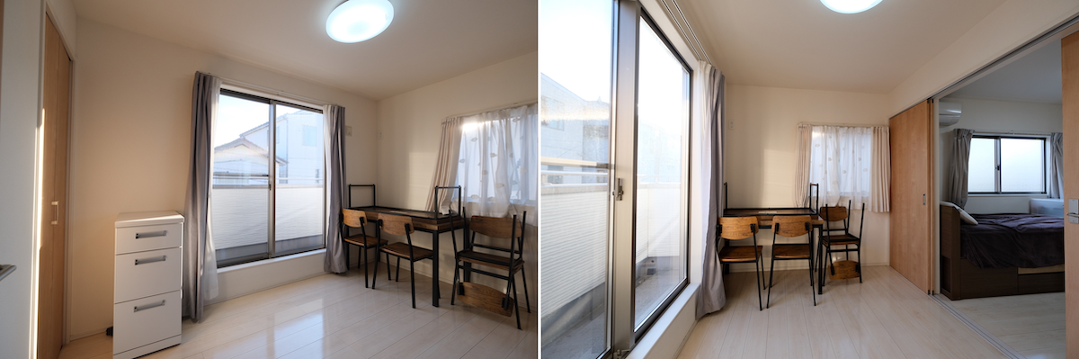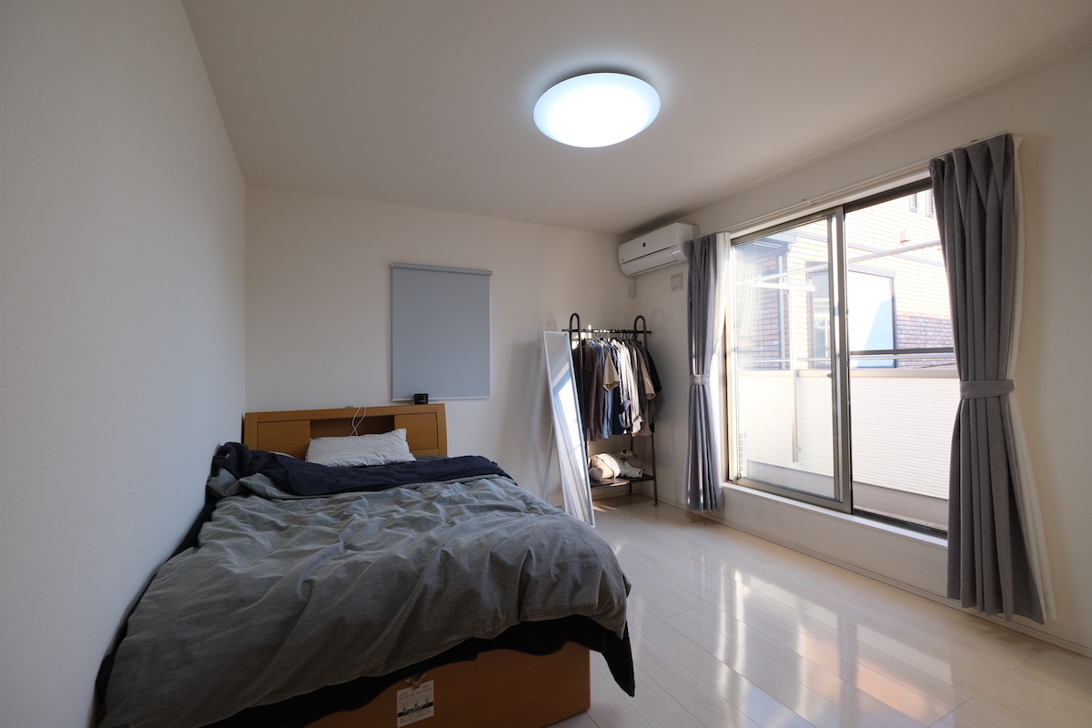 引き戸で仕切られた隣の洋室はバルコニーに面している。各部屋に収納付きなところもポイント