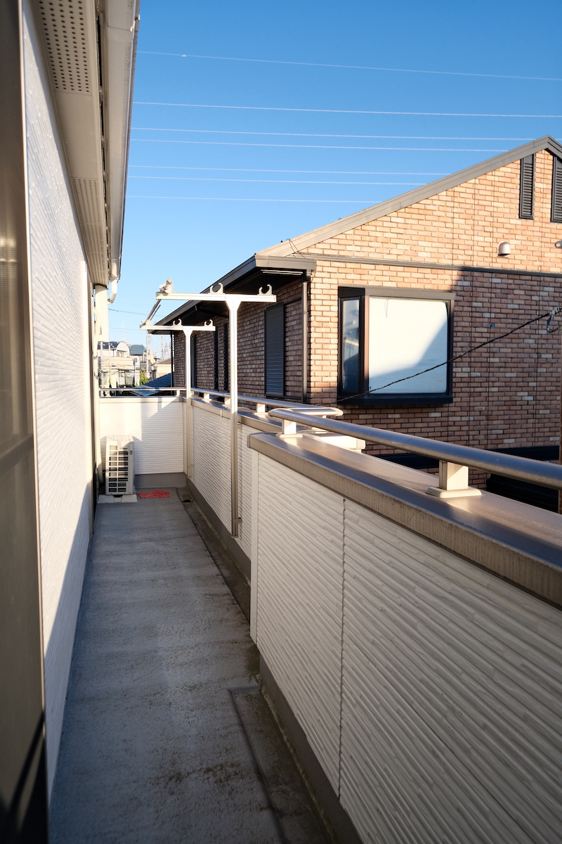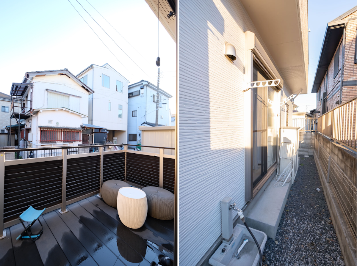 2階のバルコニーは日当たりがよく、家庭菜園にも十分なスペースがある