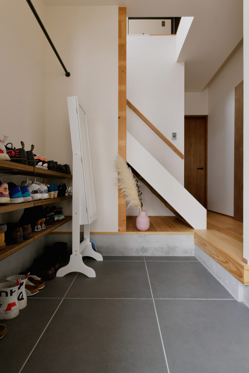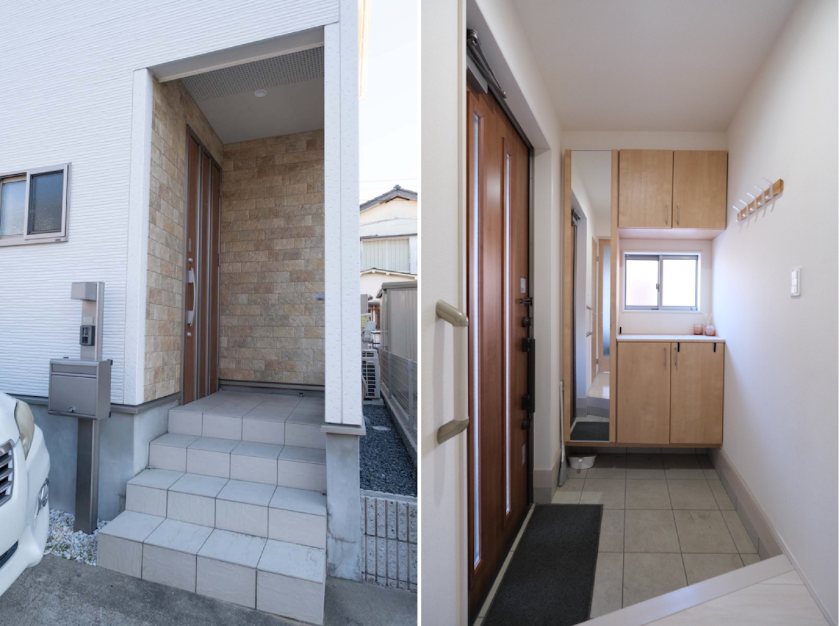 既存の間取りを活かしつつ、収納などをお好みに合わせた造作で変更するのもいいですね。床材や上り框のデザインを変更するだけでも、ガラリと印象が変わりますよ。