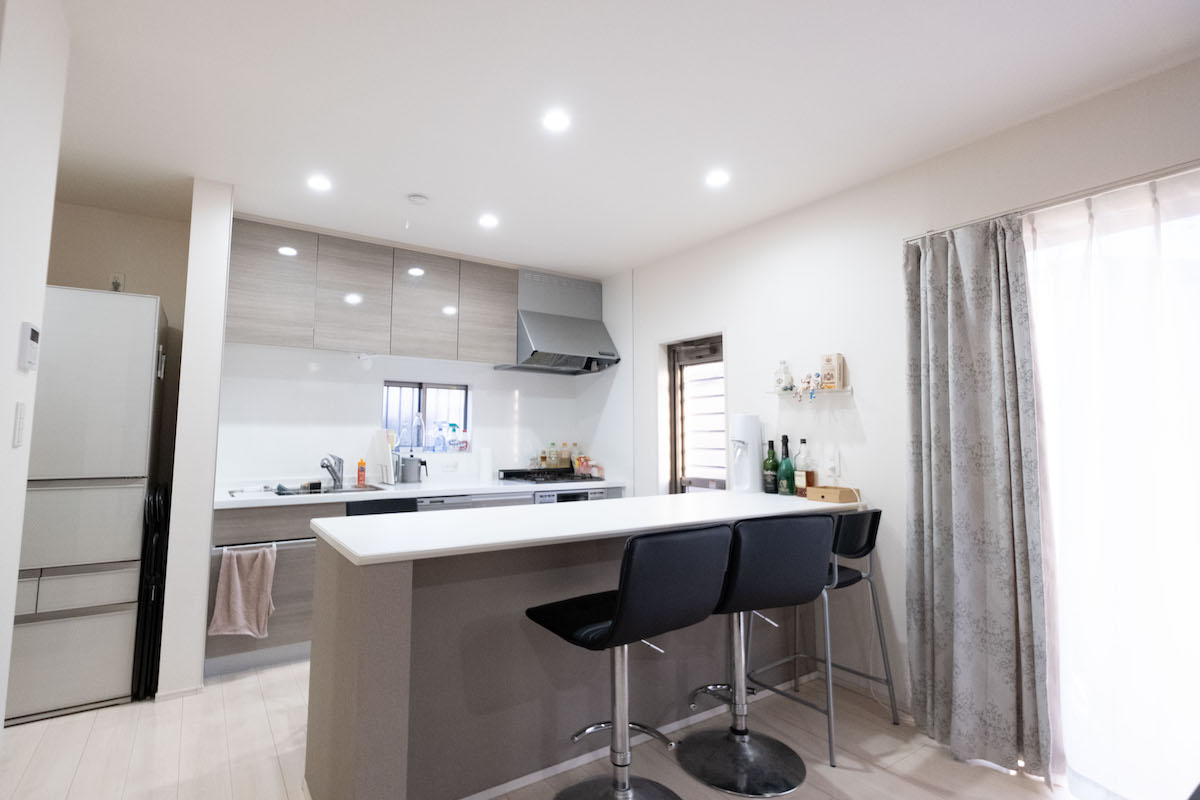 大人だけでお酒を飲みたいとき、対面カウンターが重宝しました。パントリーやクロゼットなど収納も十分で、LDKが生活感なく広々使えるところも気に入っています。