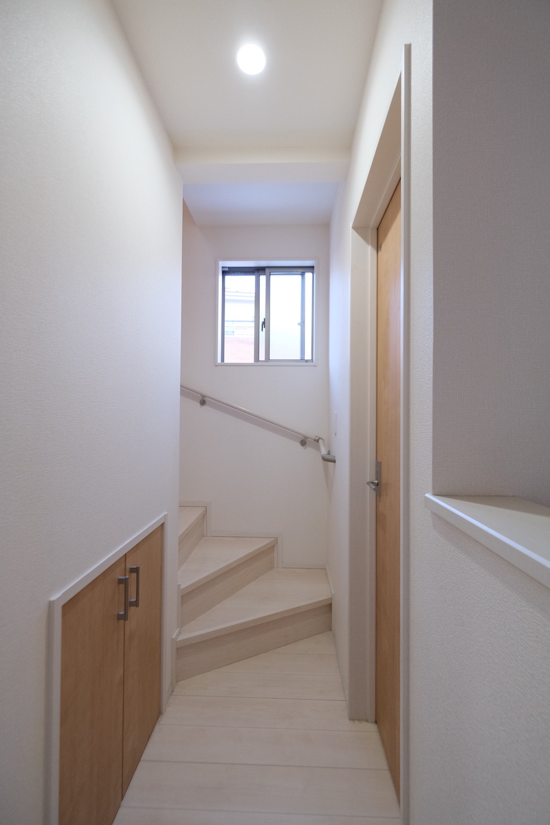 階段は掃き出し窓つきで通気性も◎ 階段下などに大容量の収納がまとまっている