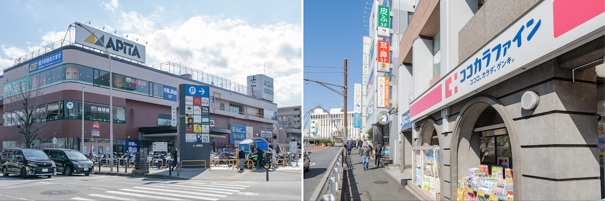 駅近なので大型商業施設の他にもドラッグストアやクリニックなども充実している