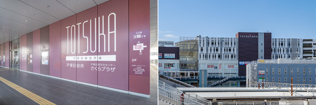 戸塚区役所とトツカーナは駅直結で西口に所在