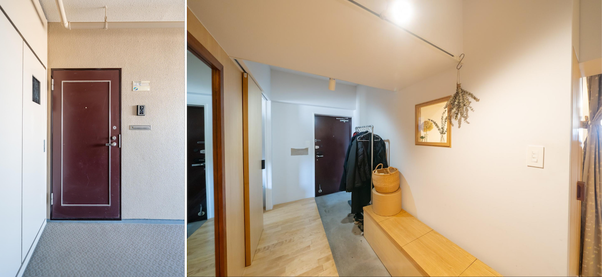 収納スペースもしっかり確保された、明るい印象の玄関