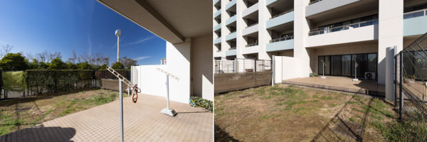 愛犬に良いなと思ってこの広いリビングと庭付きの部屋を選んだのですが、やっぱりガーデニングを楽しんでいる人が多いですね。日当たりと風通しがよく、リビングから庭の様子が一望できますし、すぐに出られるので、作り込むことができると思います。