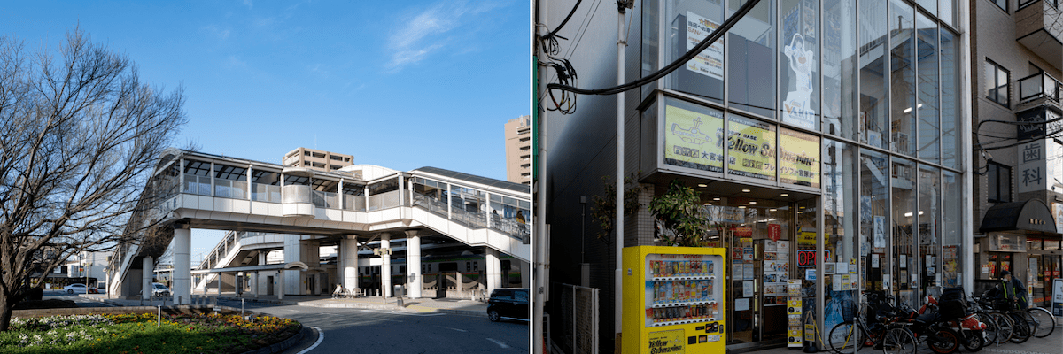 宮原駅はコンパクトながら、駅前には飲食店やホビーショップなどがある