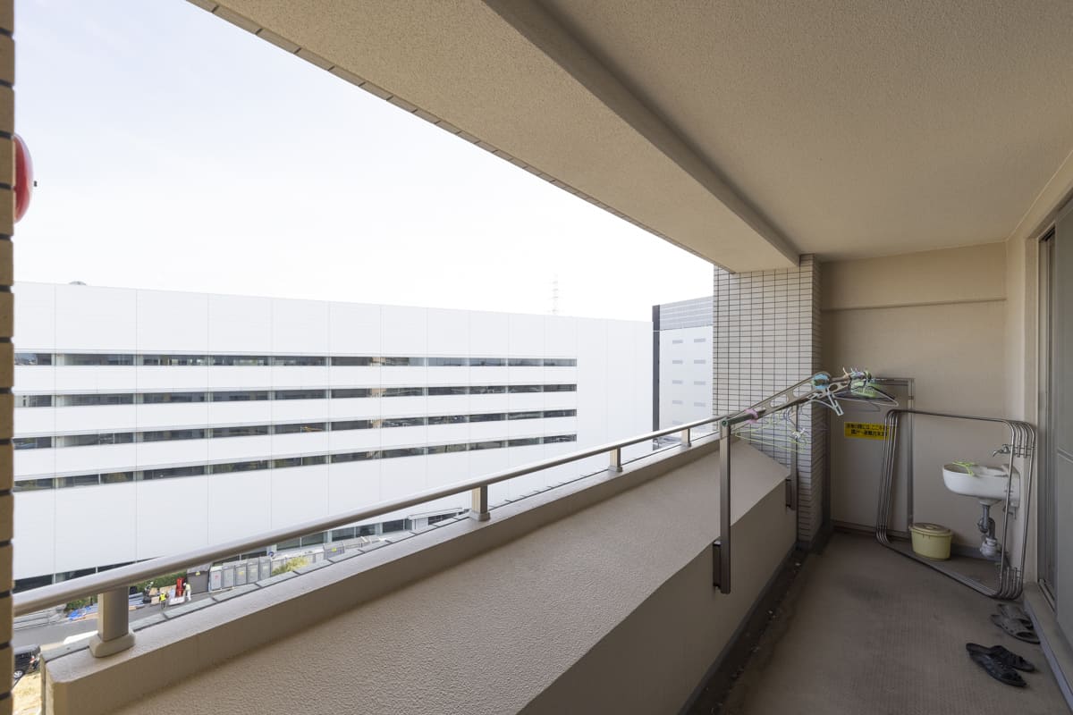 家事を行うには十分なスペース。目の前に建物はあるが人目が気になることはなく、開放感もある