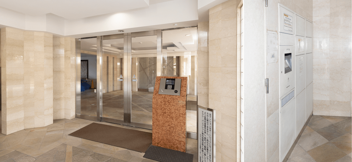 きれいに整えられたエントランス。日中不在しがちな人にも安心な宅配ボックス付き