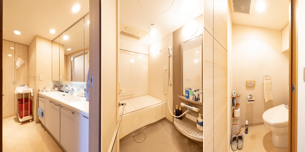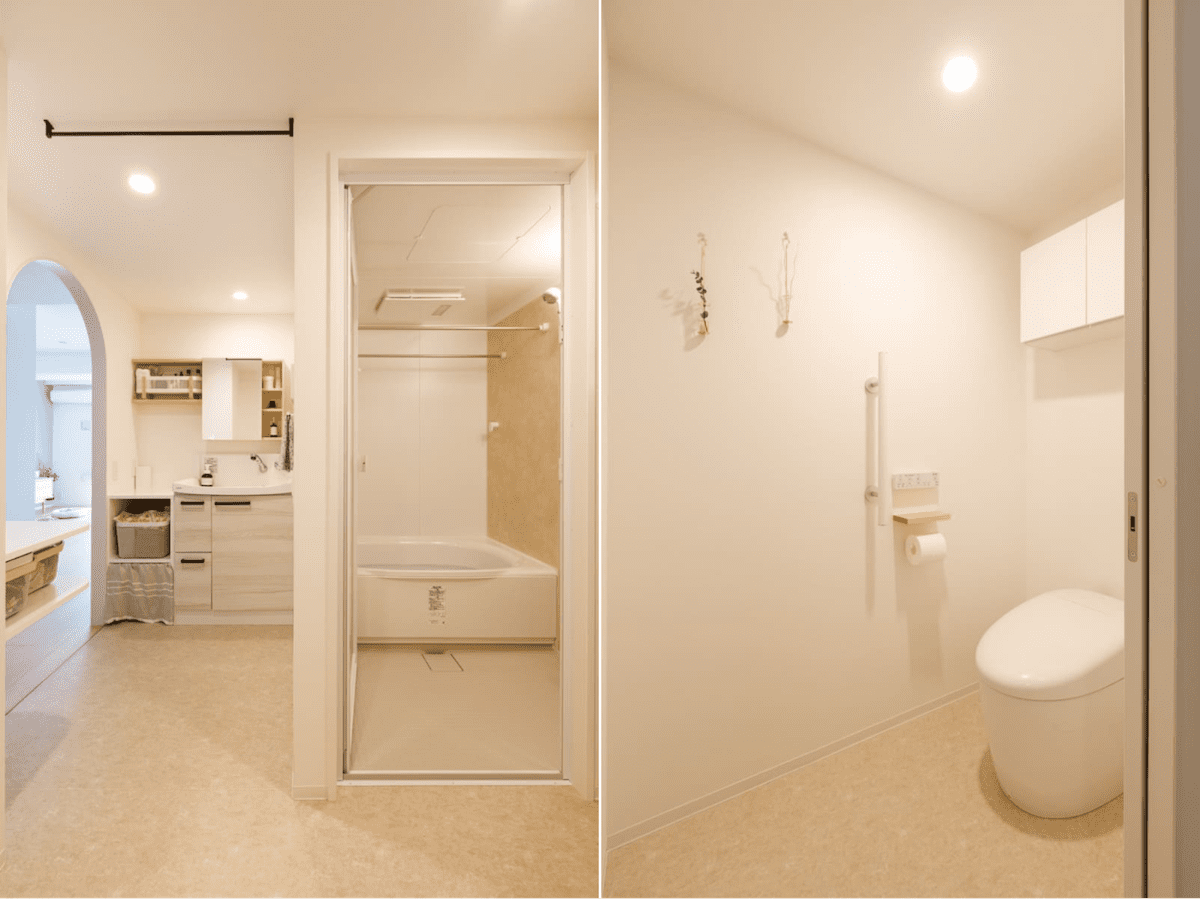 段差のない水まわりや間口の広いトイレは車椅子でも使いやすく、長く住むことができます。リノベーションなら配管から新しくできますよ。