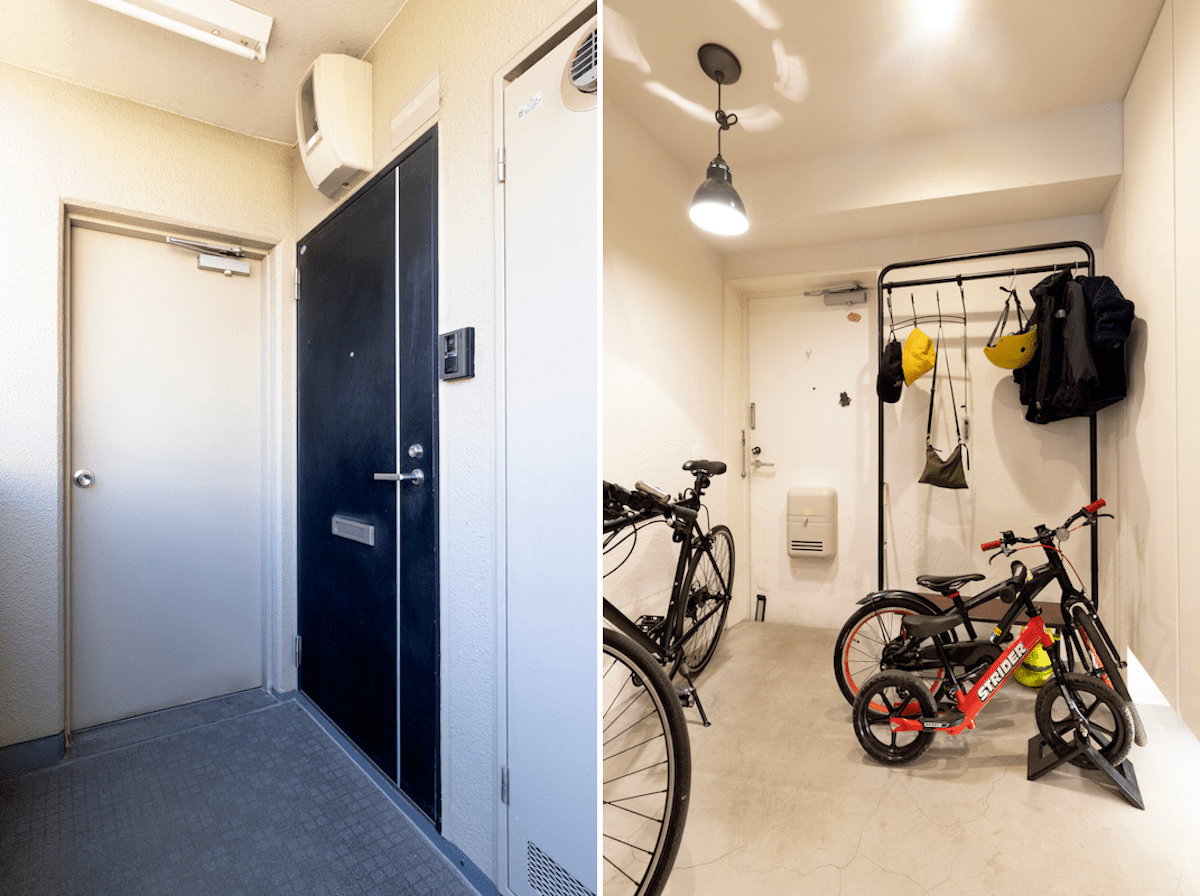 玄関土間は自転車を複数台置けるくらいの広さ。シュークロゼットの容量も多い