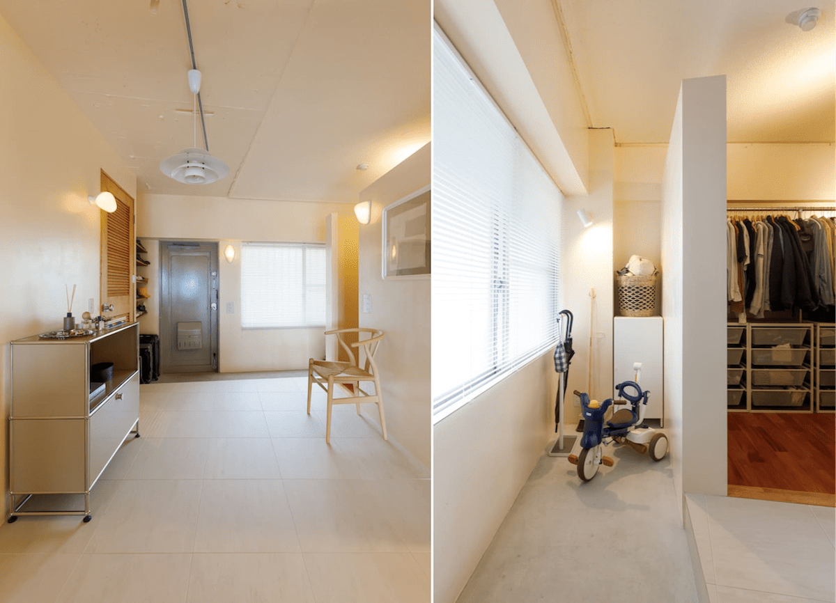 リノベーションで、とくに玄関とリビングは広々とした余裕のある間取りに。リビングは日当たりがとても良く、過ごしやすい環境が整っています。