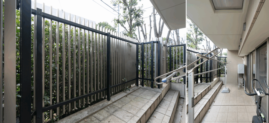 植栽が目隠しになっていて、プライバシーがしっかり保たれつつ、風通しもいいですよ。洗濯物や布団を干しても周りの視線が気にならないので、普段使いにかなり重宝しています。