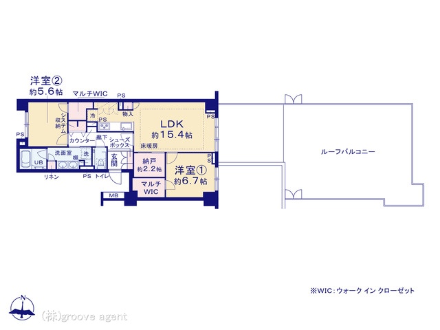 建物設備床暖房, ディスポーザー, ルーフバルコニー, WIC, 浴室乾燥