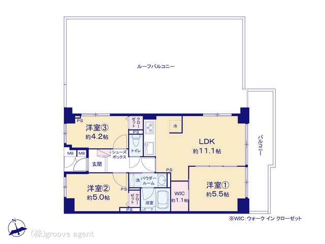 | 建物設備 | ルーフバルコニー, WIC, 角部屋, 浴室乾燥 |