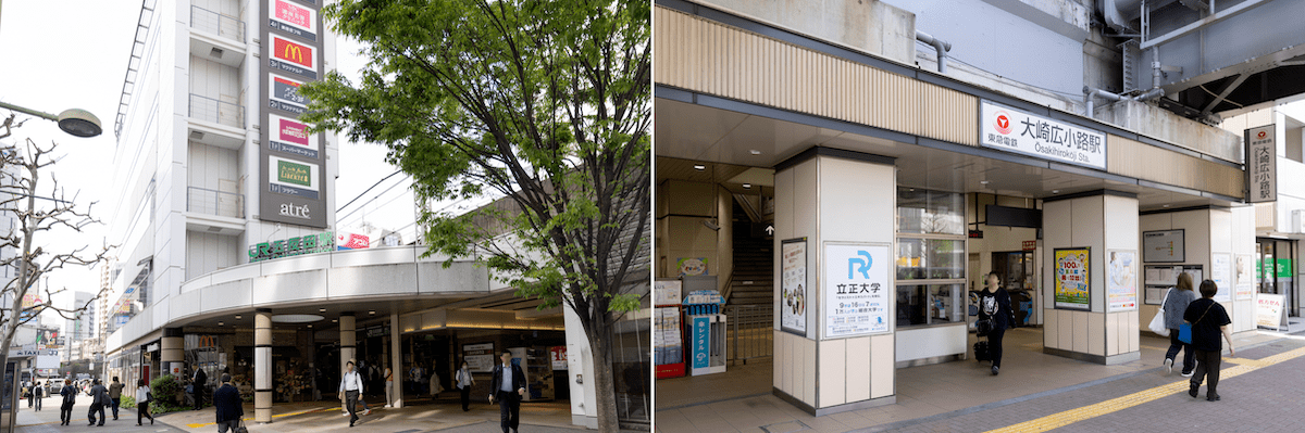 コンパクトながら駅ビルが併設されていて便利な五反田駅。大崎広小路駅の周辺にも多くの商業施設が軒を連ねている