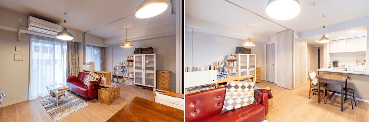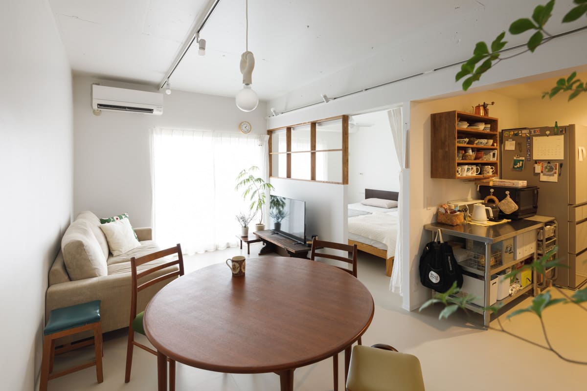 南西向きの明るい部屋。仕切りを使って1LDK⇔2LDKに切り替えられる
