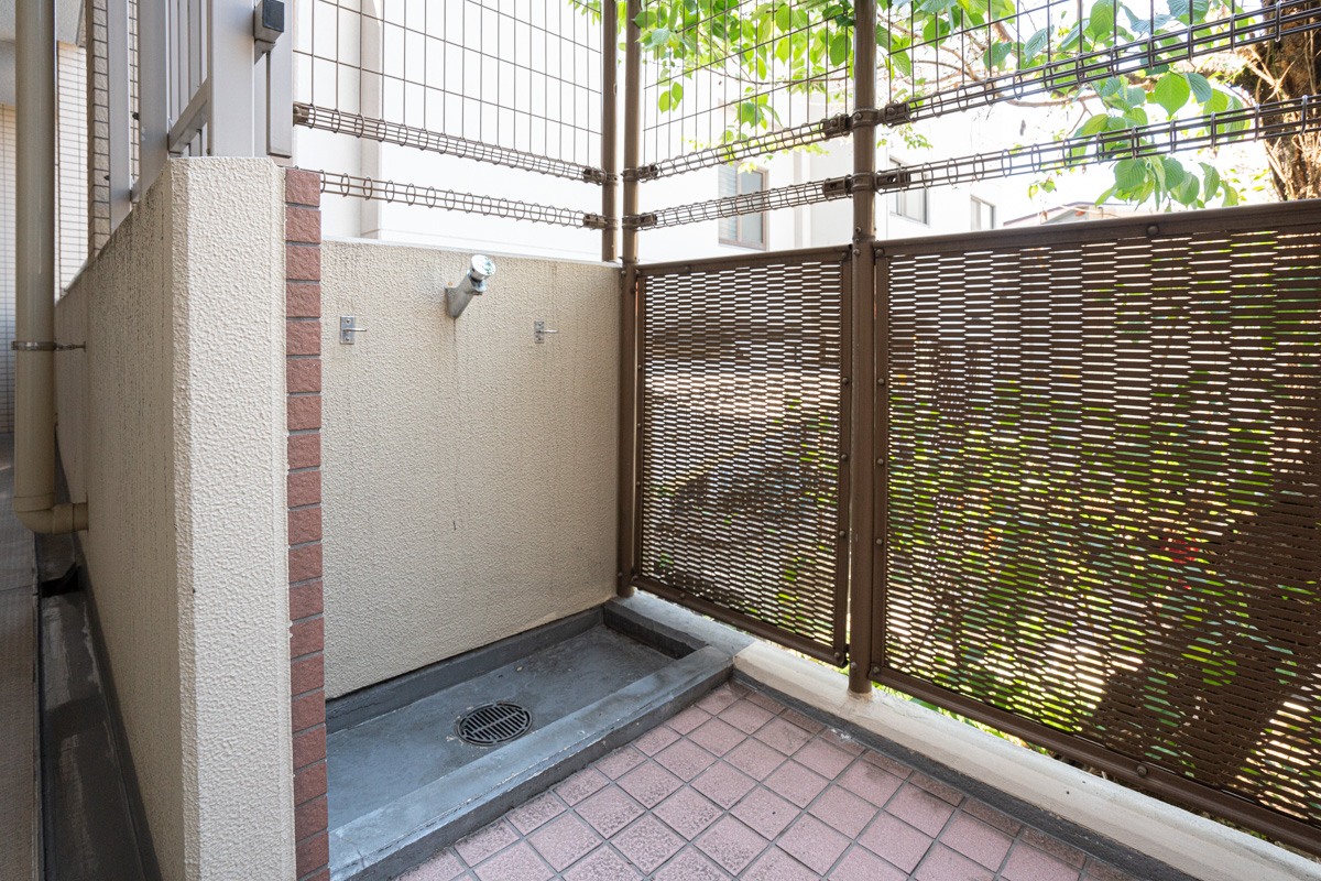 はい、共用部のスロープを上がったところに犬の足洗い場があるんです。他のマンションにはあまりないですよね?散歩から帰ったら、家に入る前にそこで犬の足を洗うことができます。うちも何度も使わせてもらいました。