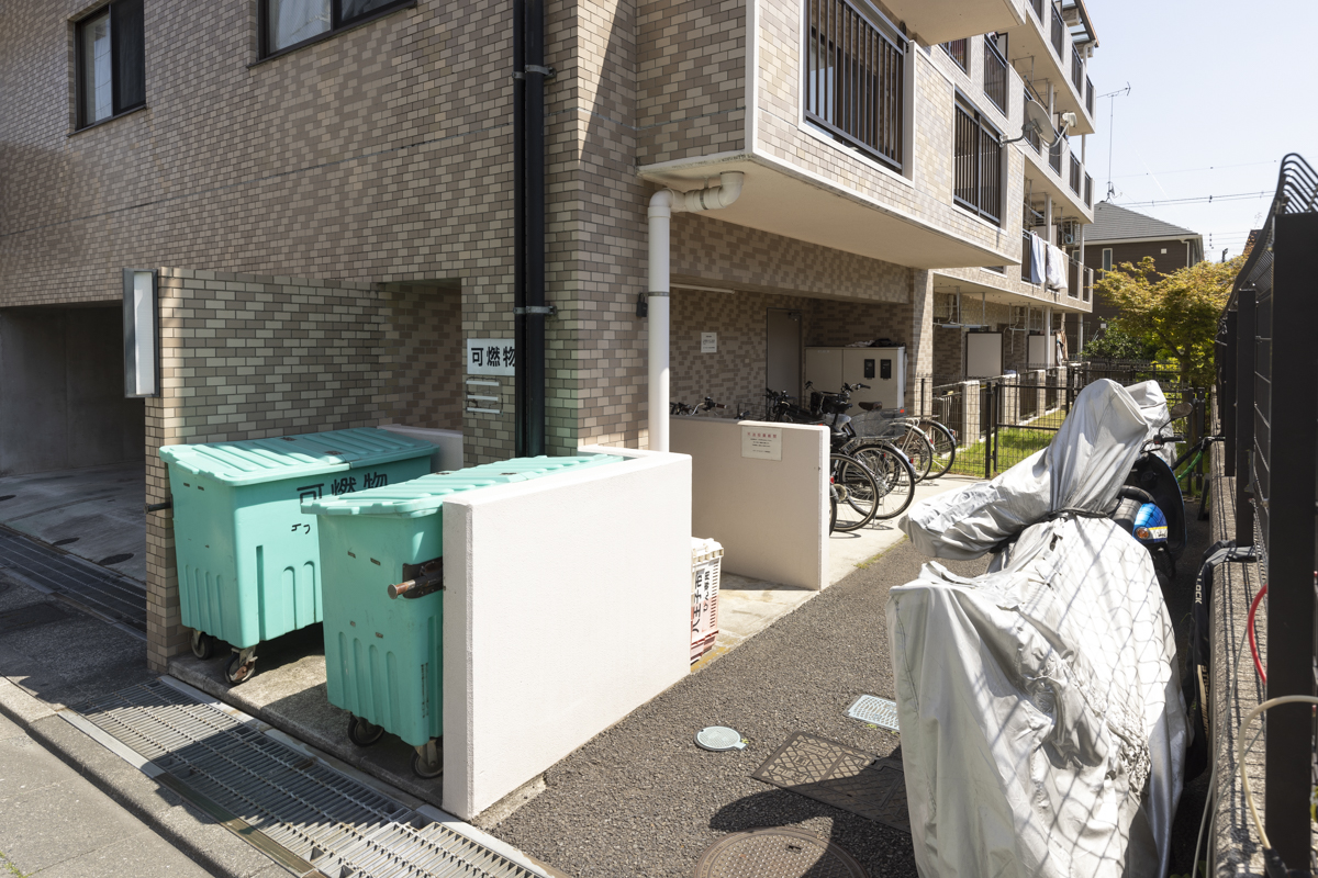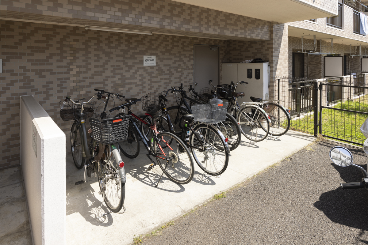 駐輪場、バイク置き場も備わっている。ゴミ置き場は蓋付きでカラスに荒らされる心配もない