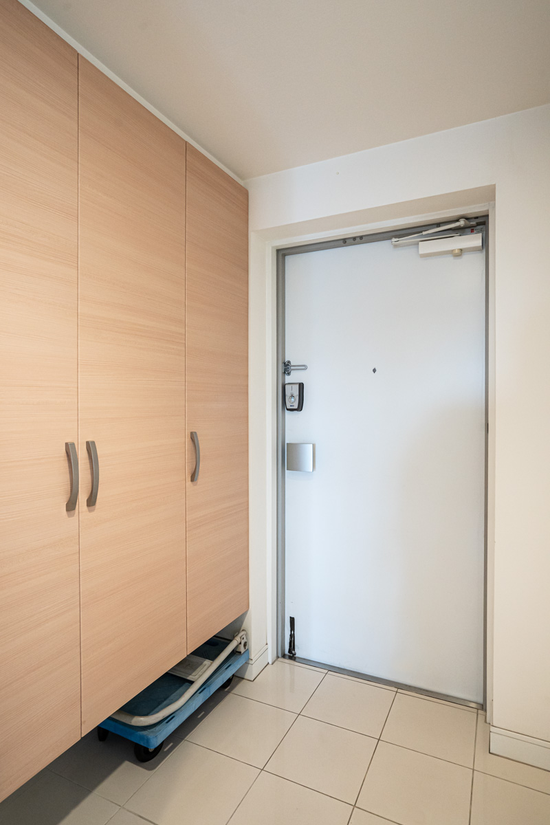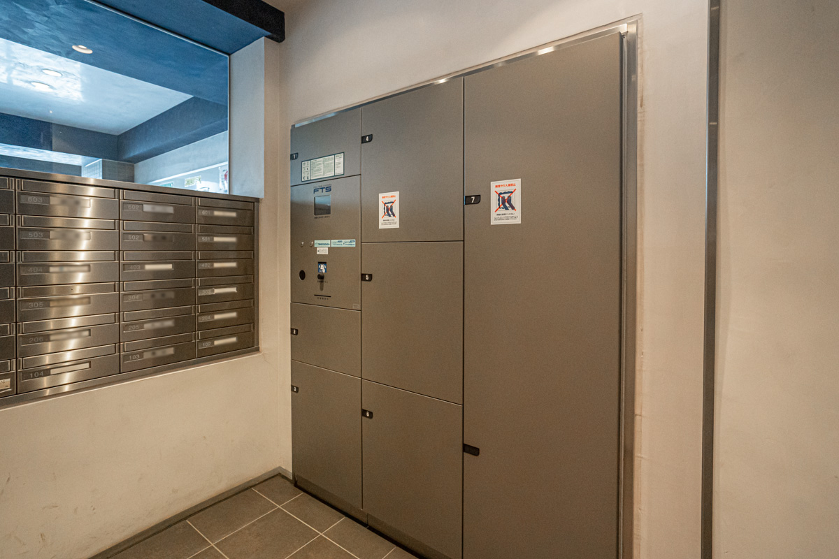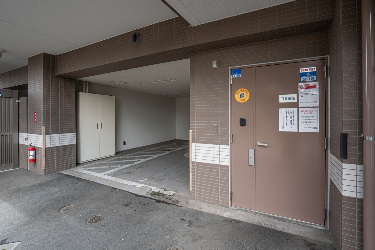 24時間出せるゴミ置き場です!これがあるのも、このマンションに決めた理由の1つでした。早朝でも深夜でも、ゴミをいつでも出せるので、ゴミ出しの時間に間に合わなくてうっかりゴミを出し損ねるということもありません。それから、やはりオートロックで防犯面が安心なところでしょうか。どこもカードキーで管理されていて、宅配ボックスもカードキーです。