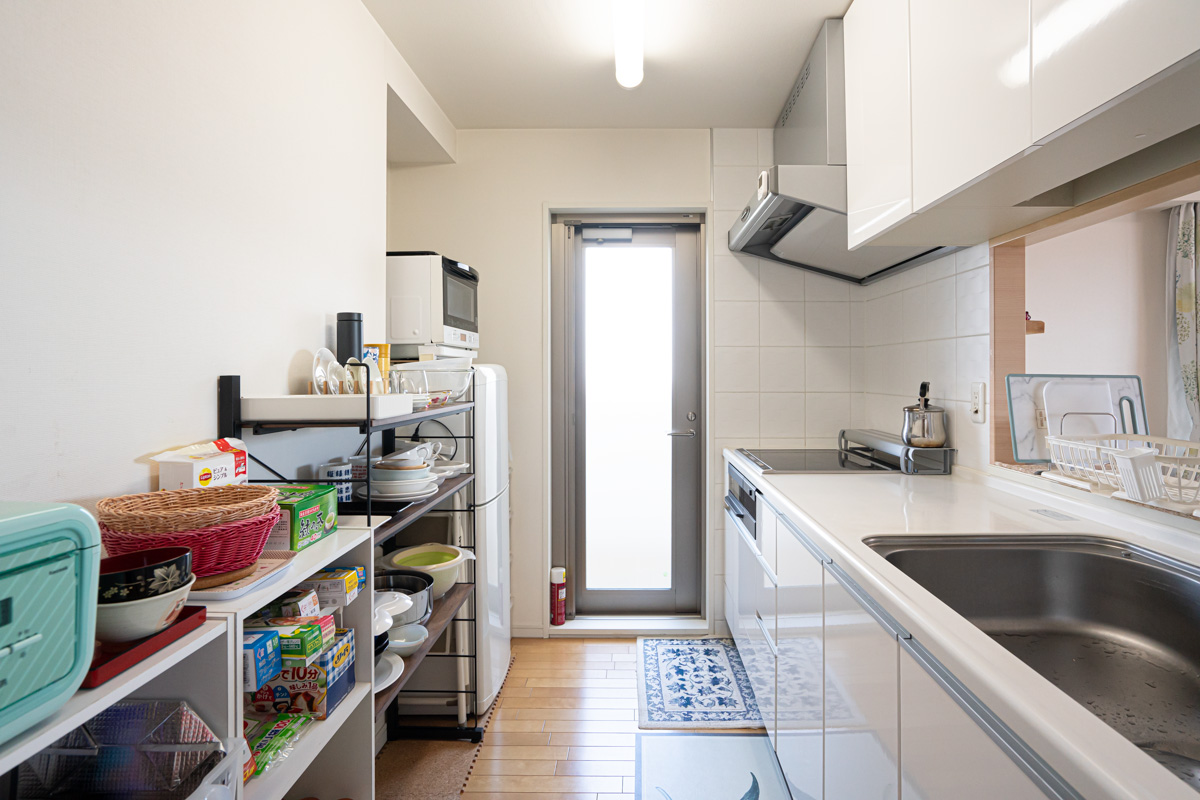 匂いや湿気がこもりがちなキッチンも、ドアがあるので換気できる
