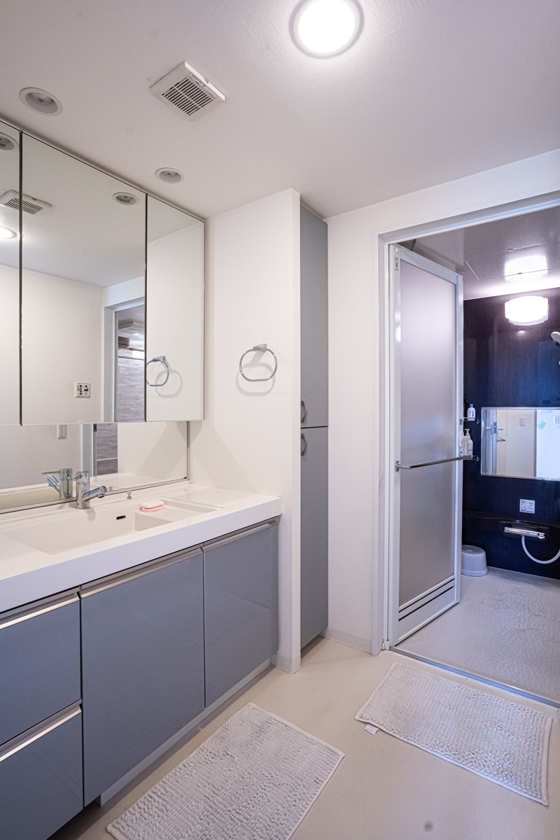 大きな洗面室はお子さんとお風呂に入るときにも便利