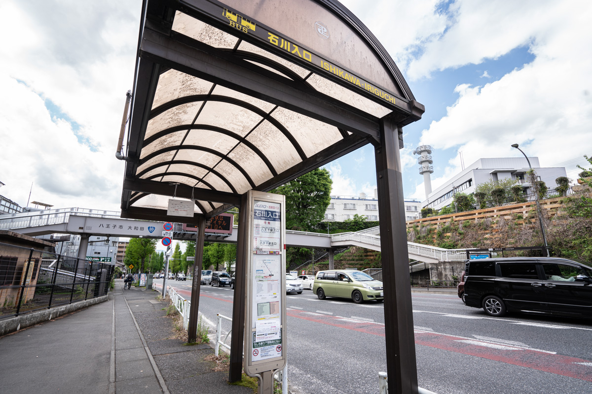甲州街道沿いにある「石川入口」バス停