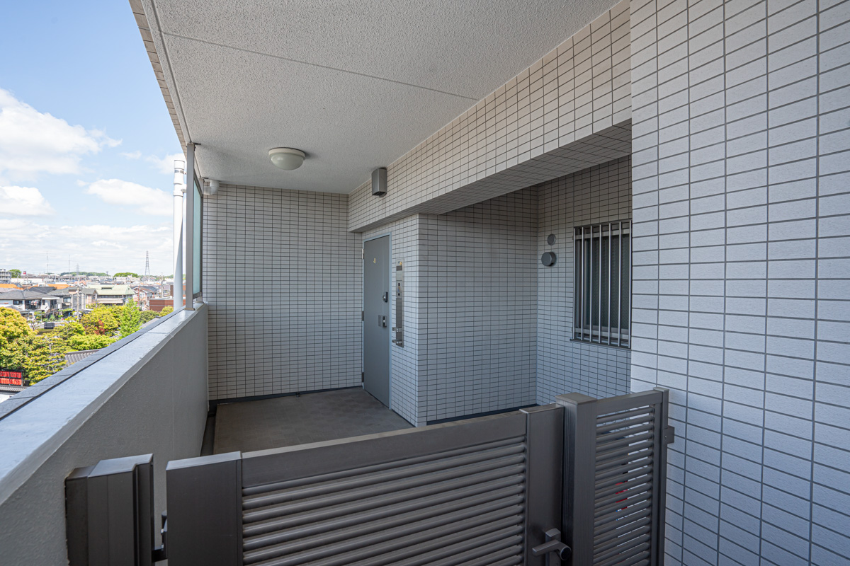 青空がのぞめる広いポーチがあるのは角部屋のここだけ