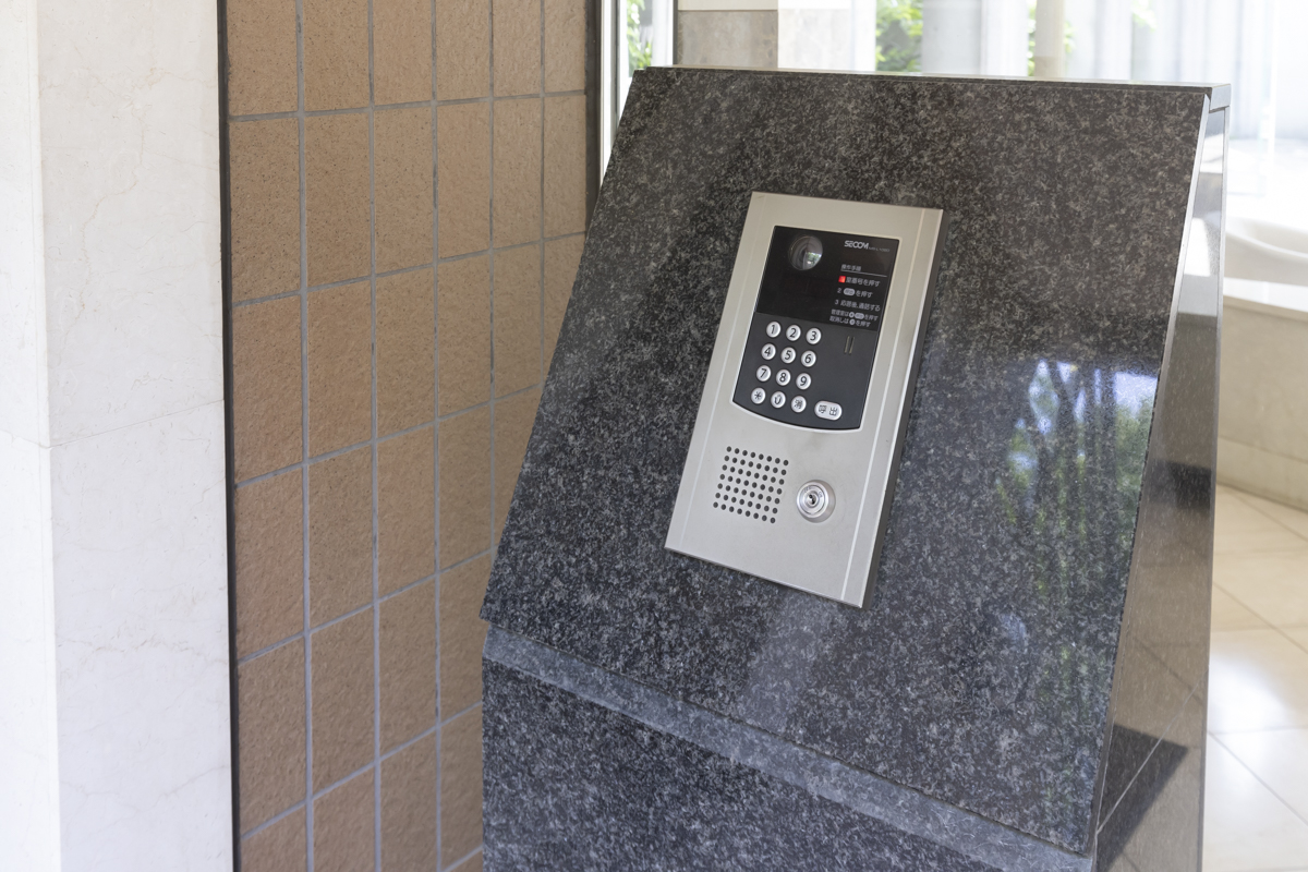 高級感のあるエントランス。エントランスの他に駐車場への出入口もある