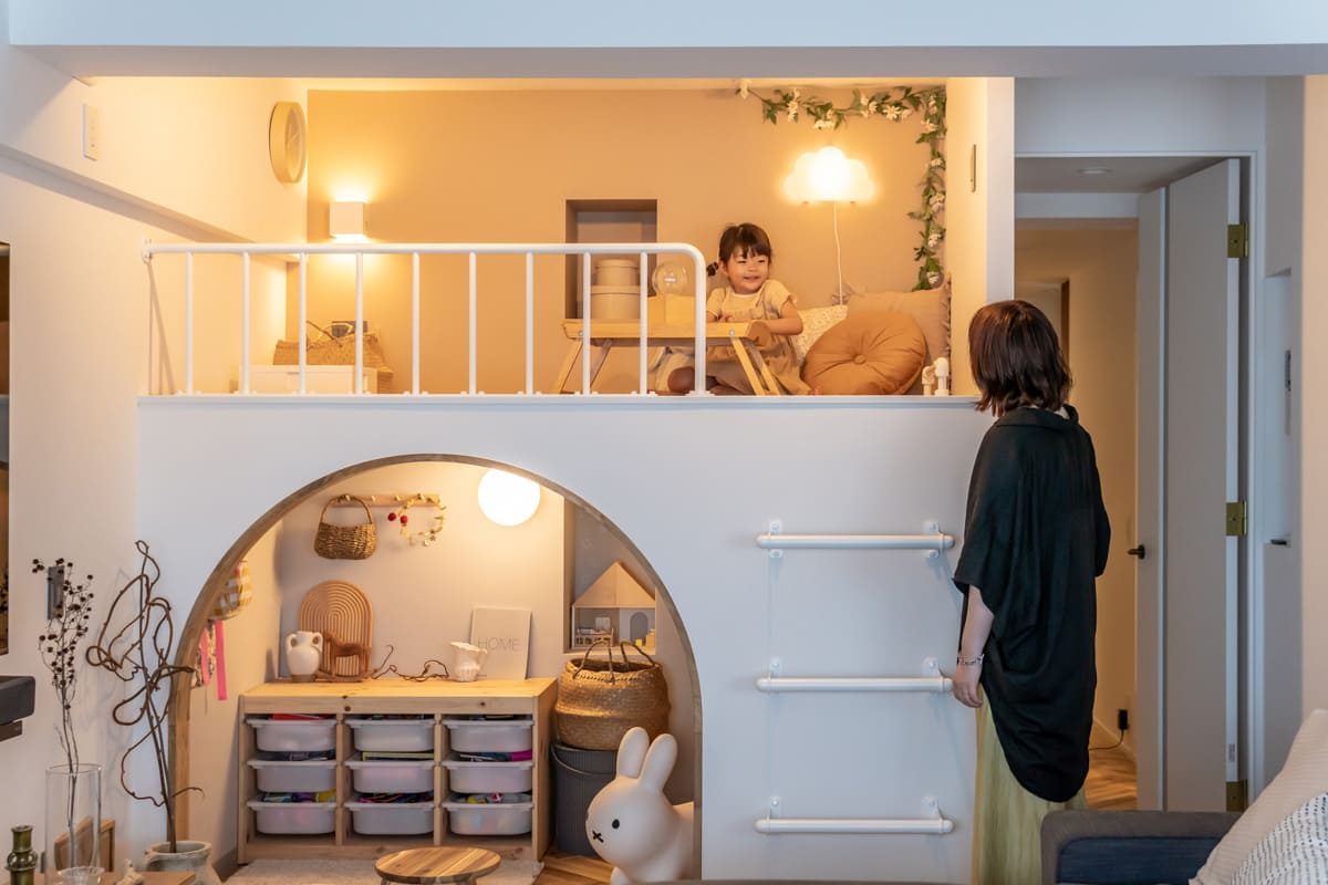 åã©ããå°ãããšãã«ã¯äºæ®µããããšããŠãåã©ããå·£ç«ã£ãåŸã¯åçŽã¹ããŒã¹ãšããŠæŽ»çšã§ããããã空éãåã©ãã®æé·ã«åãããŠãå°æ¥çã«ã¯LDKã«å£ã远å ãããªã©ããŠããã©ã€ãã·ãŒãå®ãã空éã¥ãããæ€èšã§ããŸãã