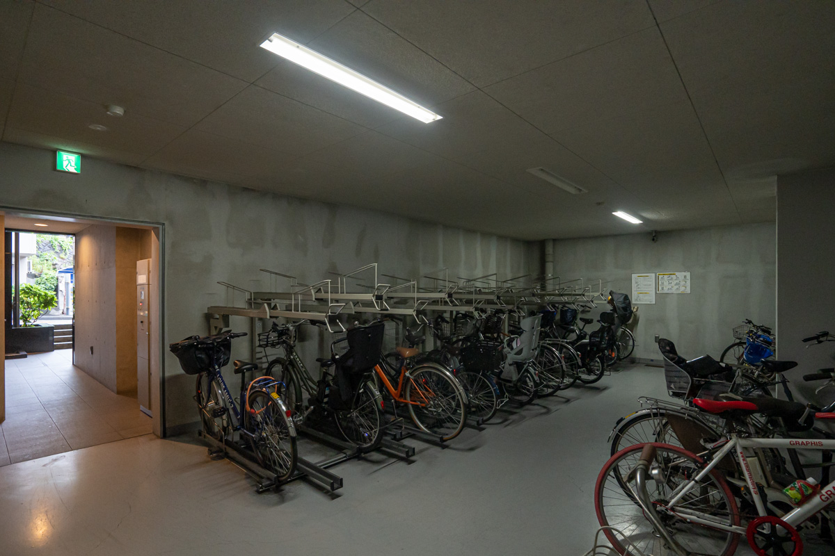 駐輪場も建物内で安心