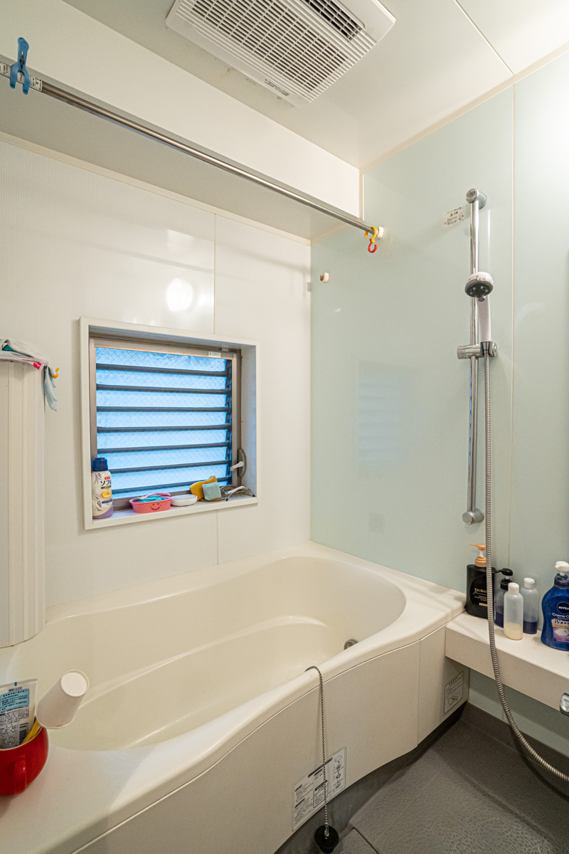 玄関ポーチは広いし、バルコニーも幅2mあって夏は子ども用プールを出せる広さです。お風呂に窓があるのも角部屋ならではで気に入りました。