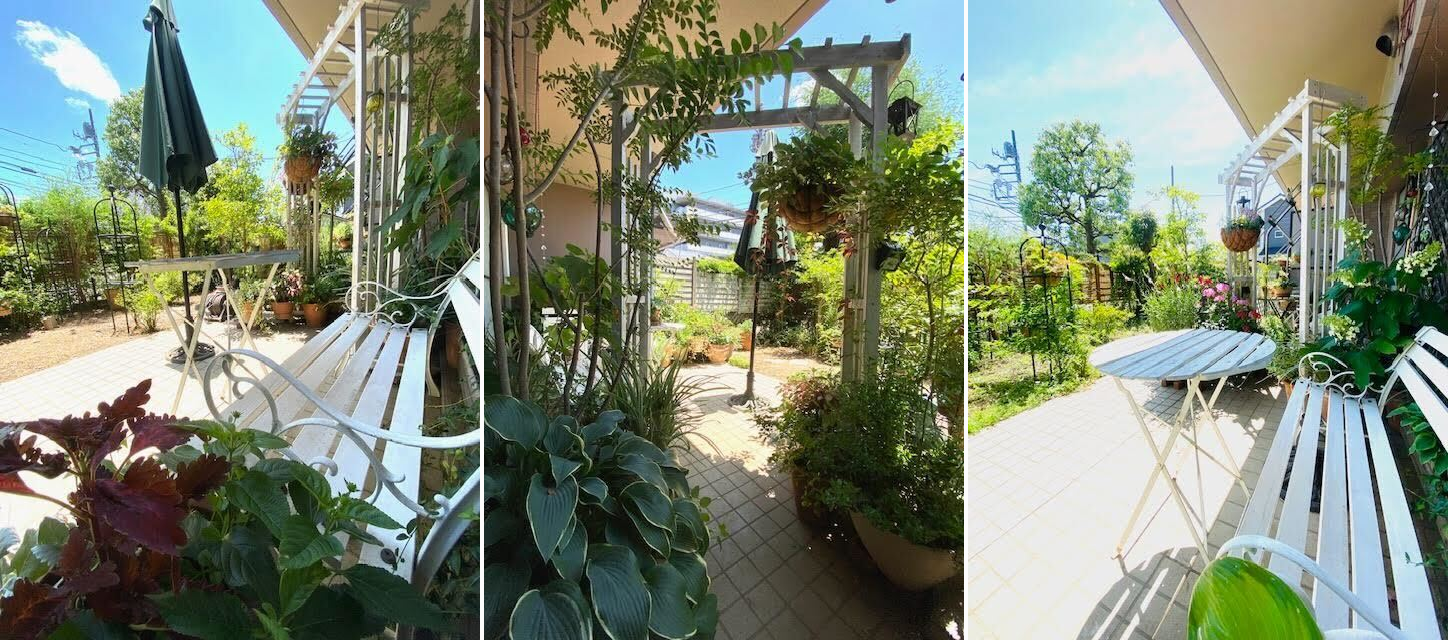 この部屋を選んだ一番の決め手は広い専用庭がついていたから。敷地内にも庭つきの部屋は他にもありますが、ここが一番大きいと思います。南側で前は公園なので、日差しがたっぷり降り注ぎます。外側の植栽よりも高いものを設置してはいけないという決まりはありますが、それ以外は自由にいじれるのが魅力。植物はビバホーム草加店が種類豊富です。小さな園芸屋さんもいくつかあるので、お好きな方はのぞいてみてください。