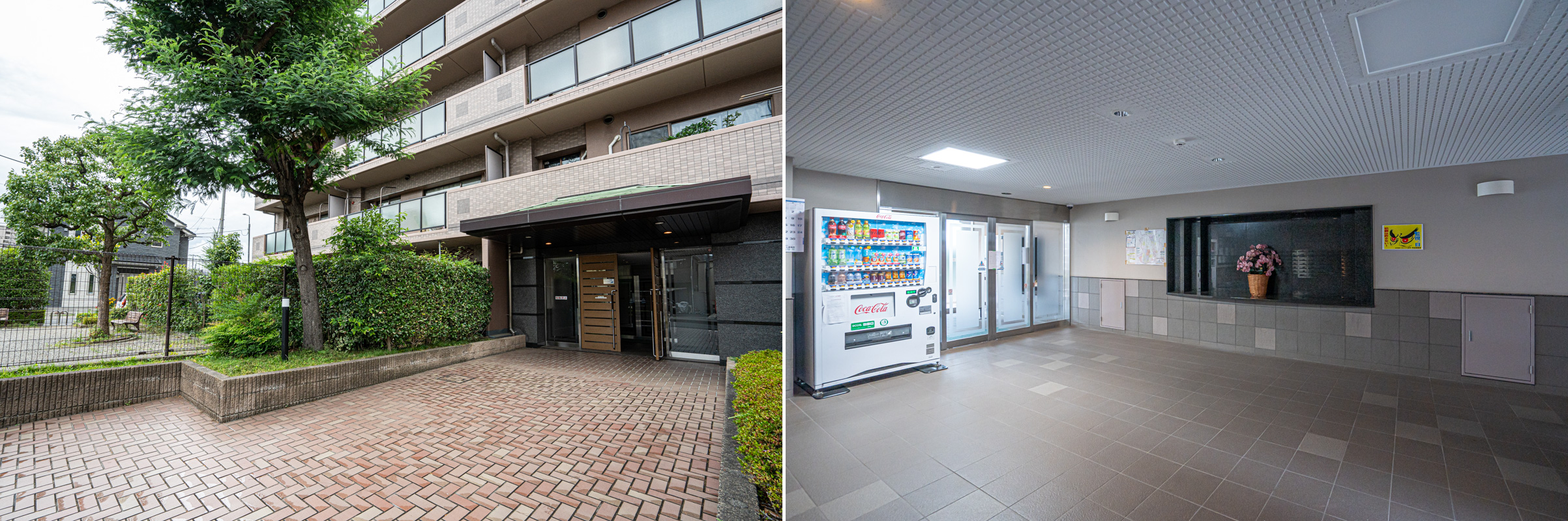 タイル敷きが美しいエントランス。オートロックを入ると広いホールになっている