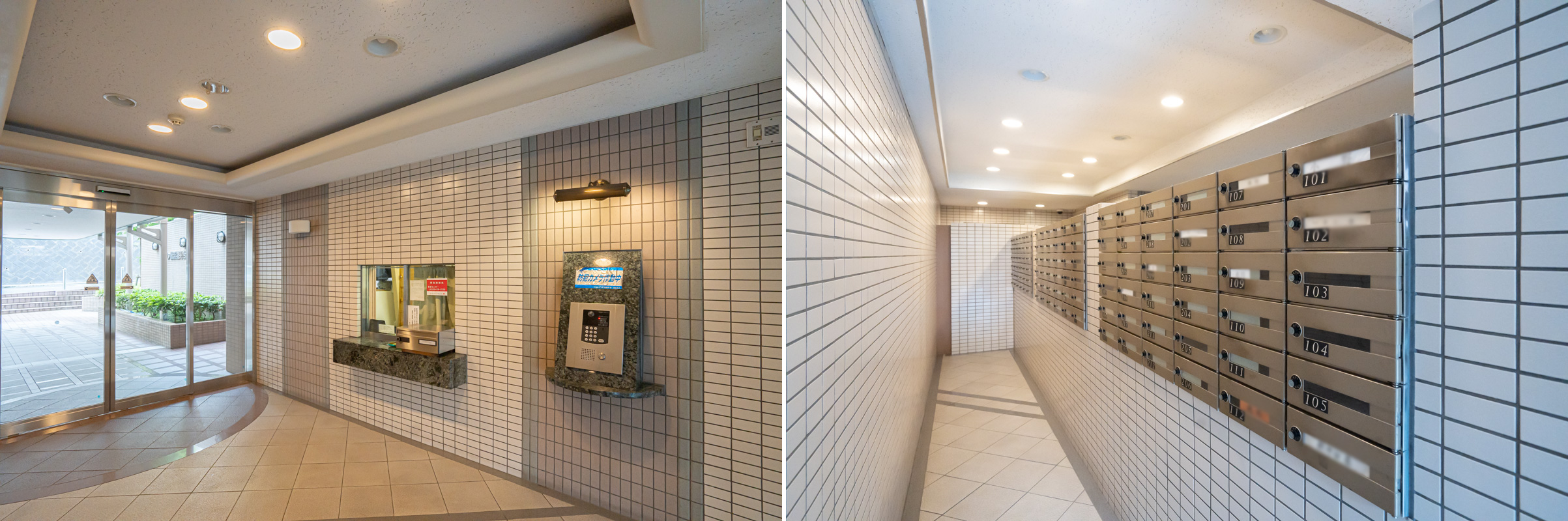 清掃員の方が毎日マンション敷地内、マンション前の道路を清掃してくれていていますから。エントランスには営業時間内には管理人さんが常時いて安心です。