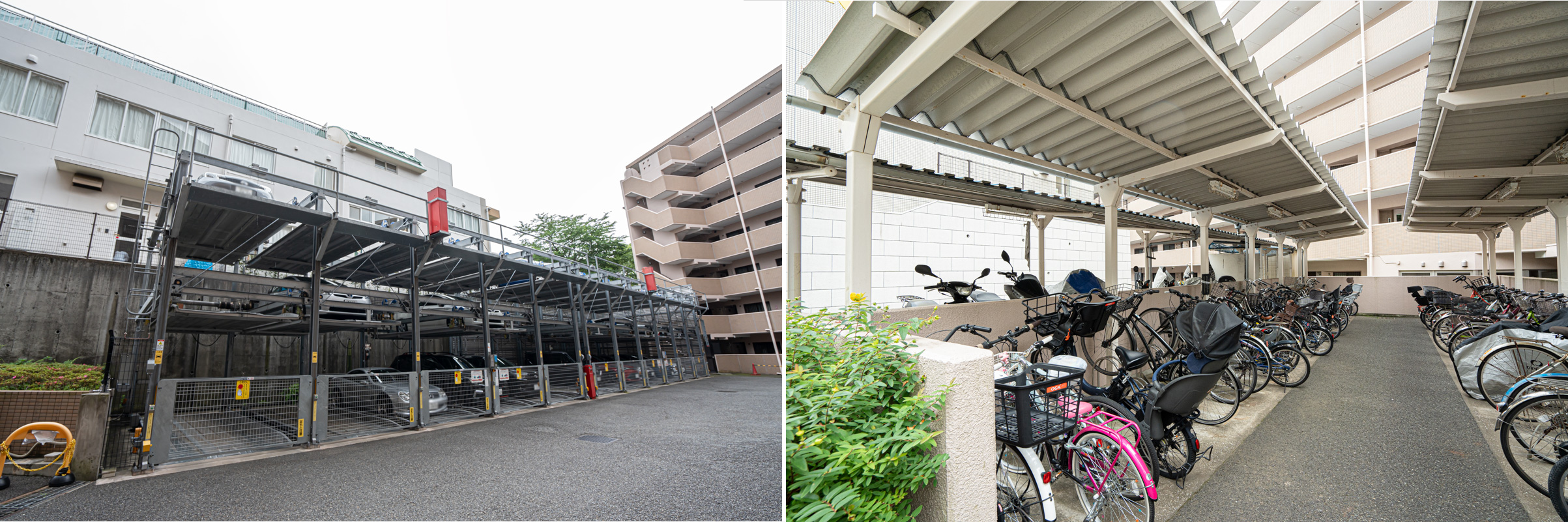 機械式駐車場と台数もたっぷりの大きめの駐輪場
