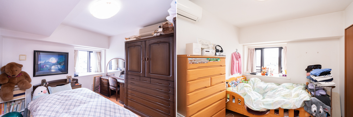 2面採光で朝から夕方まで自然光がたっぷり届く角部屋(写真左)。各個室には廊下を使って行き来できる(写真右)
