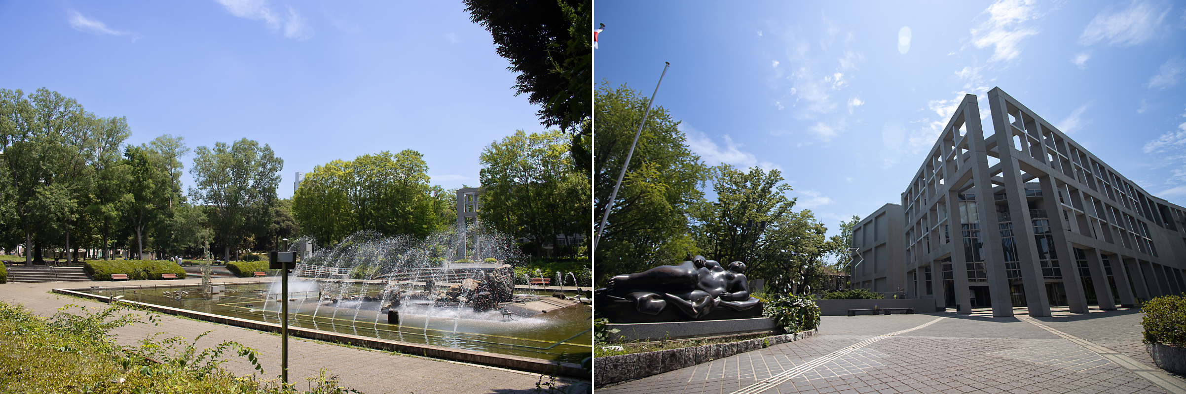 右/園内にある埼玉県立近代美術館(MOMAS)